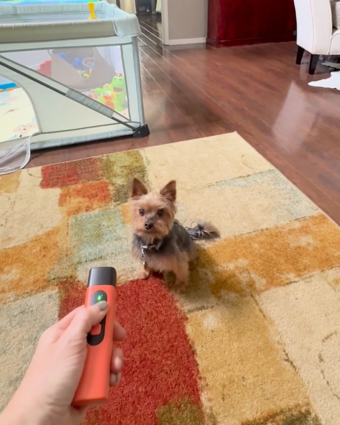 "Ich war ehrlich gesagt skeptisch, aber der BarkStop funktioniert! Sobald unser Chihuahua-Mix wieder an der Tür loslegt, drücke ich den Knopf – und er hört sofort auf. Kein Gebrüll, kein Stress. Super einfache Handhabung und endlich Ruhe im Haus."