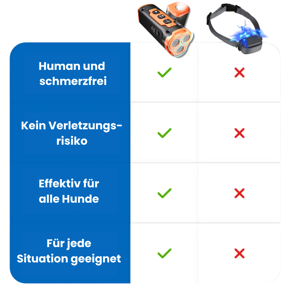 Keine Schocks. Keine Angst. Nur sichere Ultraschalltöne, die das Bellen sanft korrigieren.